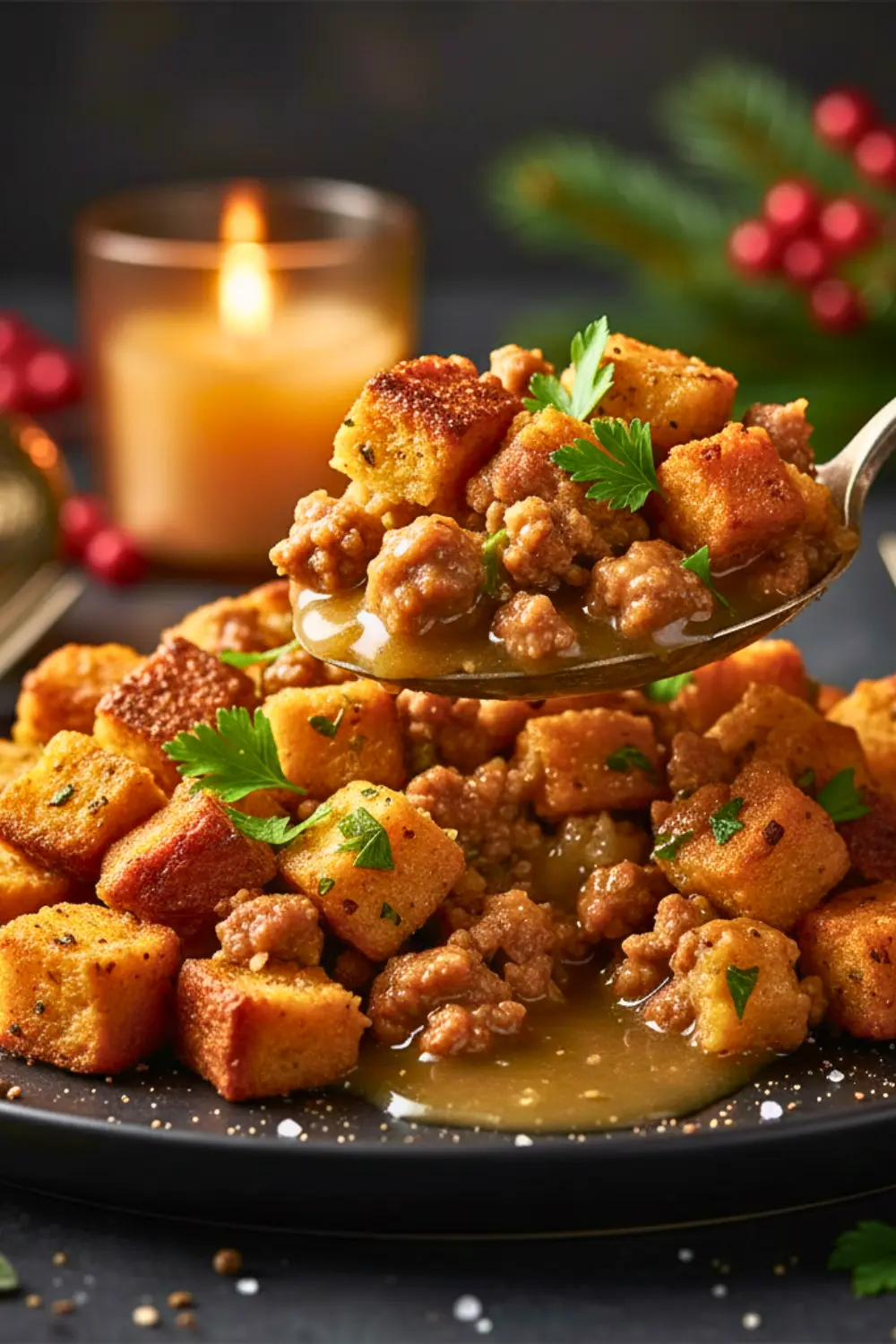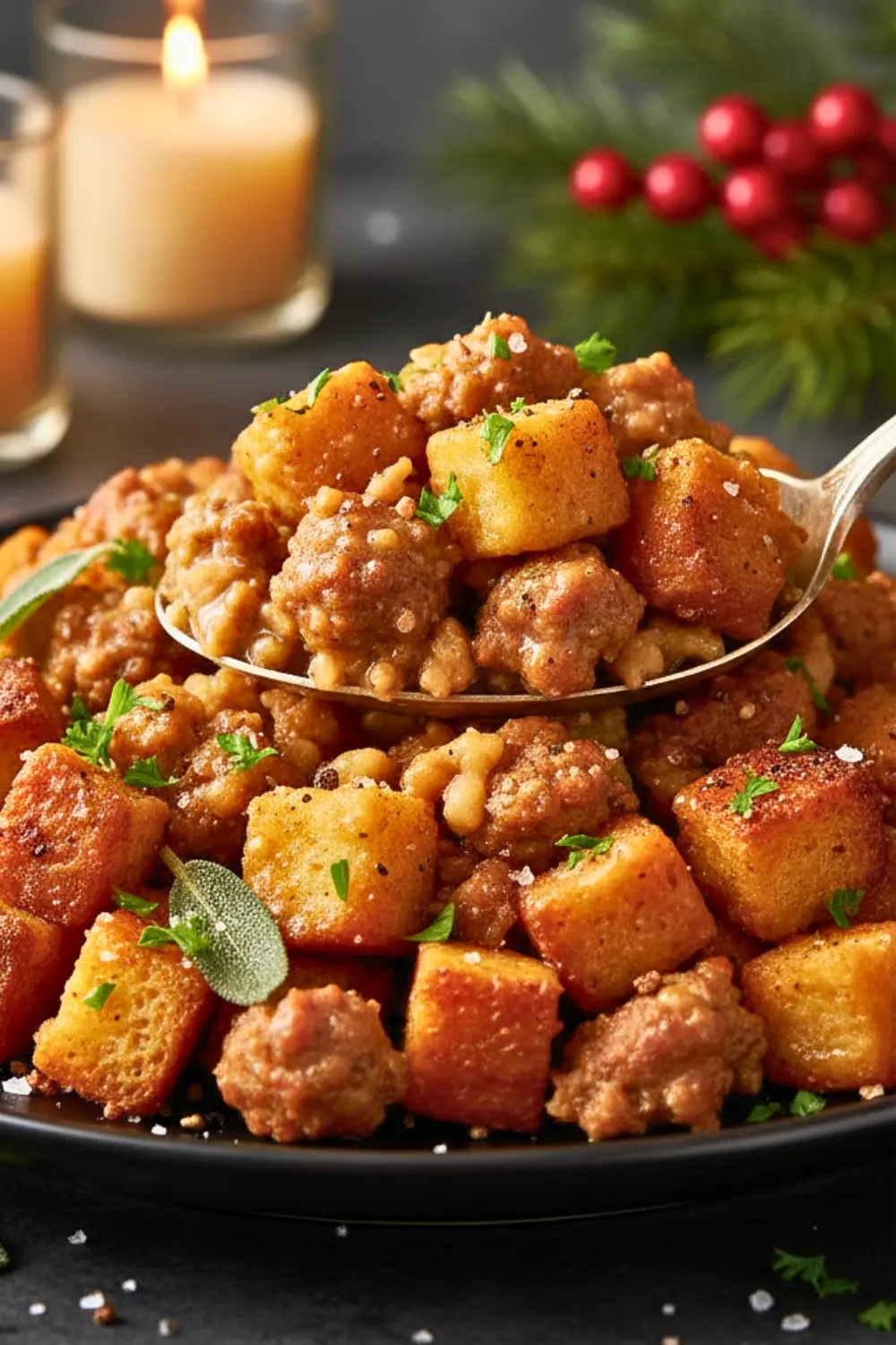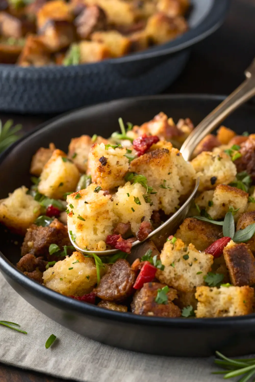 - Rich, savory flavor – The sausage brings depth, while the fresh herbs like sage, thyme, and rosemary infuse every bite with festive aromas.