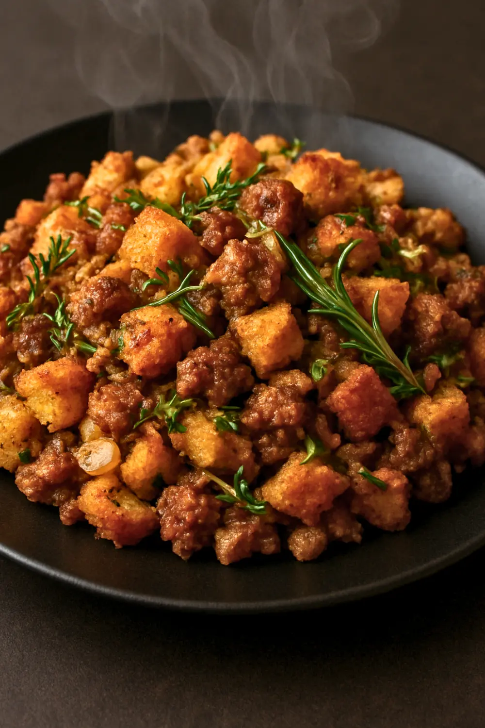 With crispy edges, a tender interior, and the perfect balance of sausage, herbs, and bread, it belongs at the center of your holiday dinner sides.