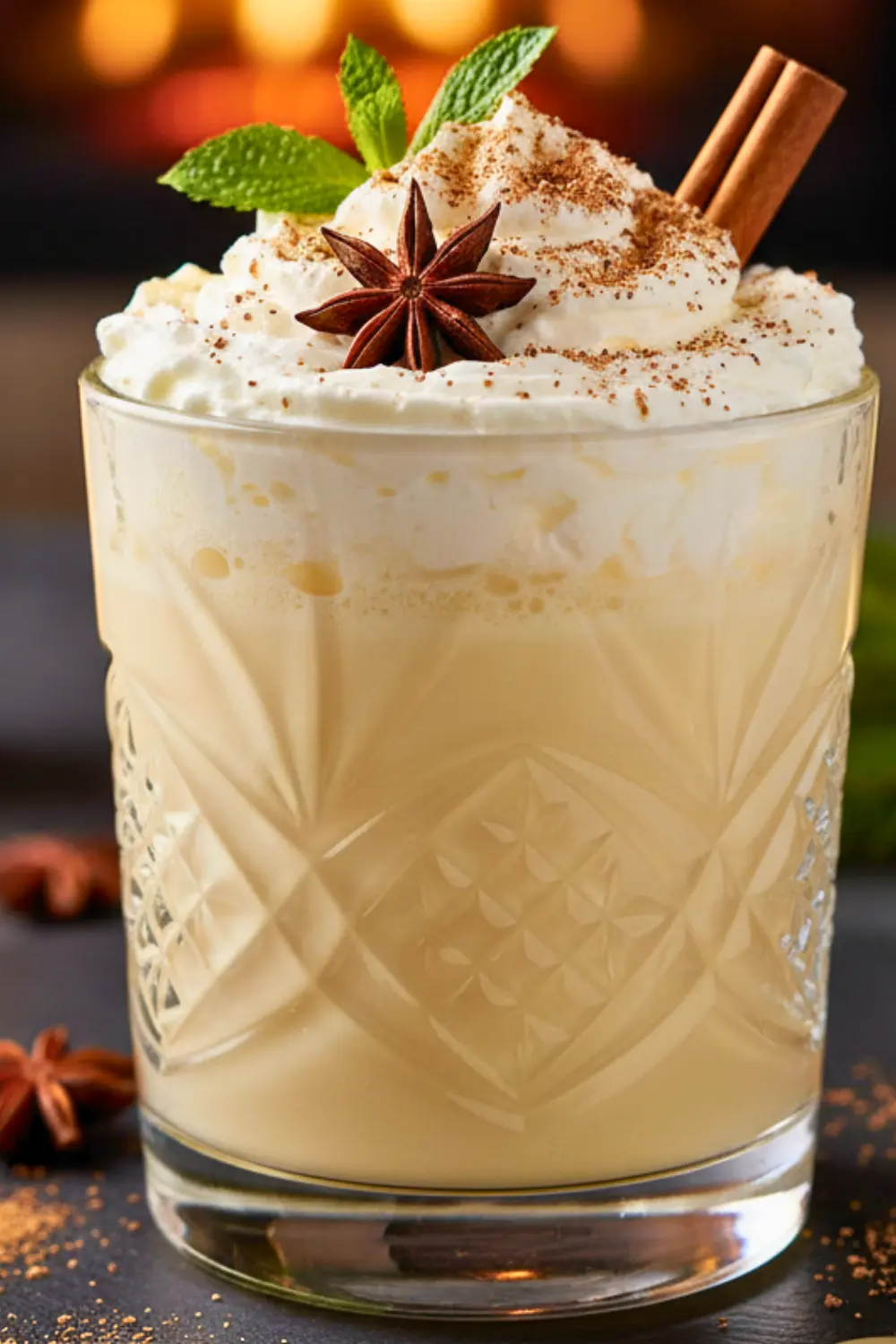 - Pour into glasses, sprinkle with freshly grated nutmeg, and serve with a cinnamon stick for garnish.
